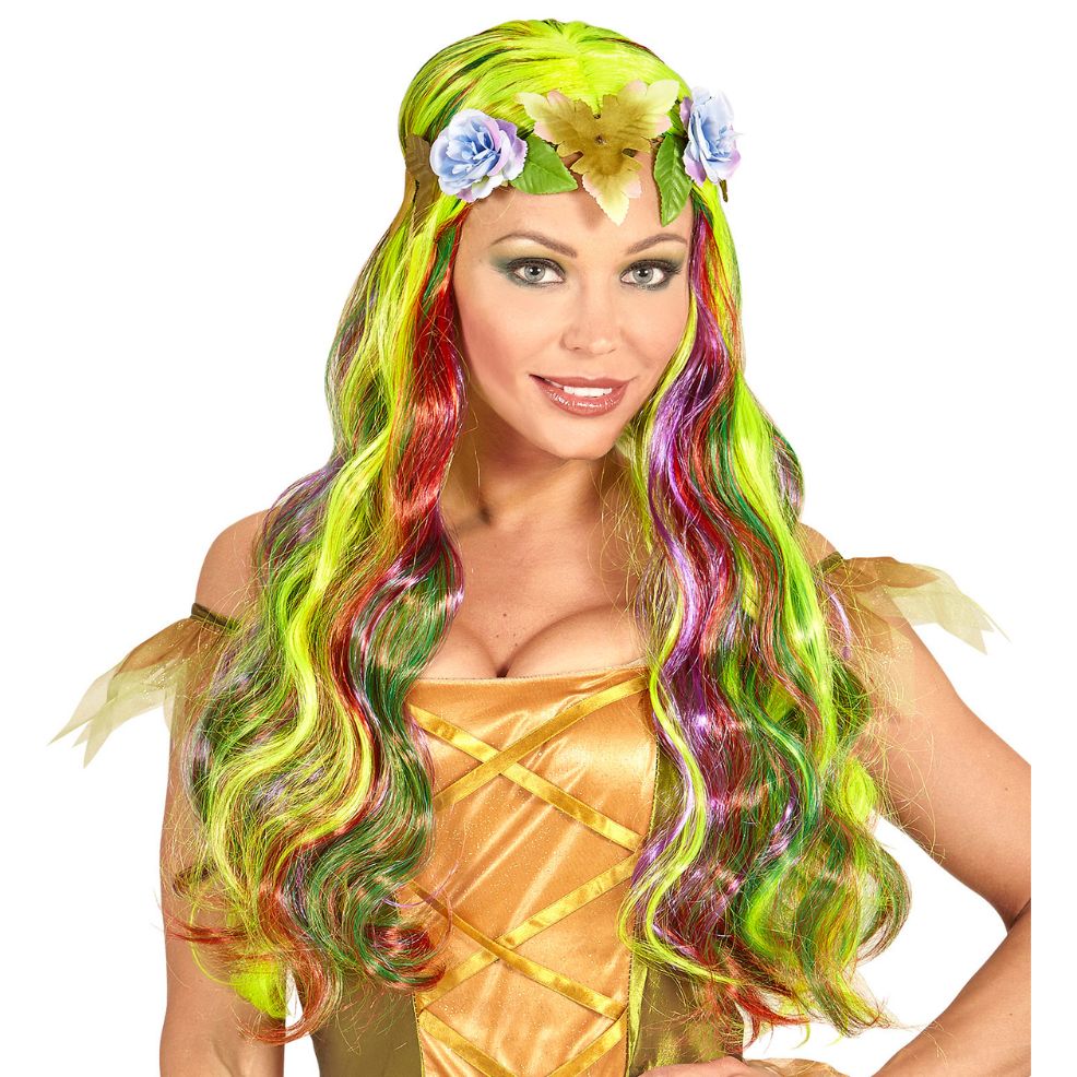 Cette Perruque Fée Fleurs, est la plus belle et colorée de notre catalogue du Carnaval. Vous allez éblouir dans les Fêtes à Thèmes avec cet original et voyant accessoire.