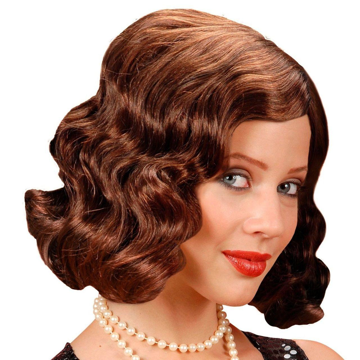 Perruque Brune Ondulations Années 20 pour le Carnaval, fêtes époque et les fêtes vénitiennes. Des accessoires pour faire un voyage dans le temps. Profitez des soirées déguisée avec vos amis et faites partie de l'histoire. Les meilleurs prix avec livraison en 24/48 heures.